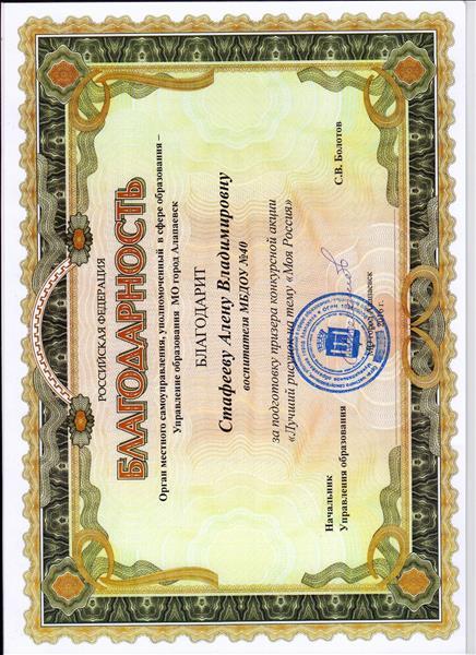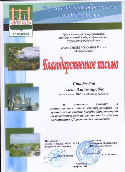 Благодарность МБДОУ "Детский сад №40", 2014 год
