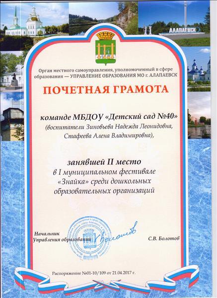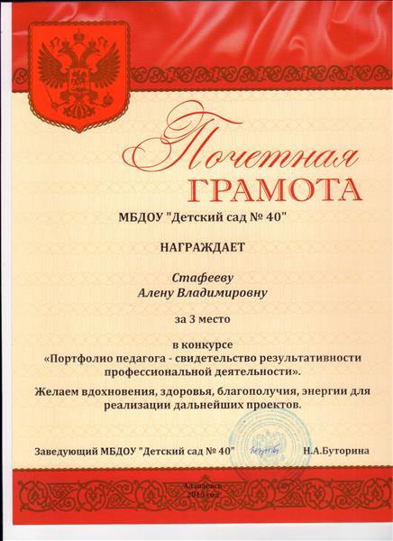 Почетная грамота МБДОУ "Детский сад №40", 2015 год